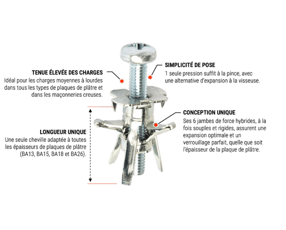 La STELLIX est la cheville pour plaques de plâtre ! Un seule longueur pour toutes les épaisseurs, simple à choisir, impossible se tromper !